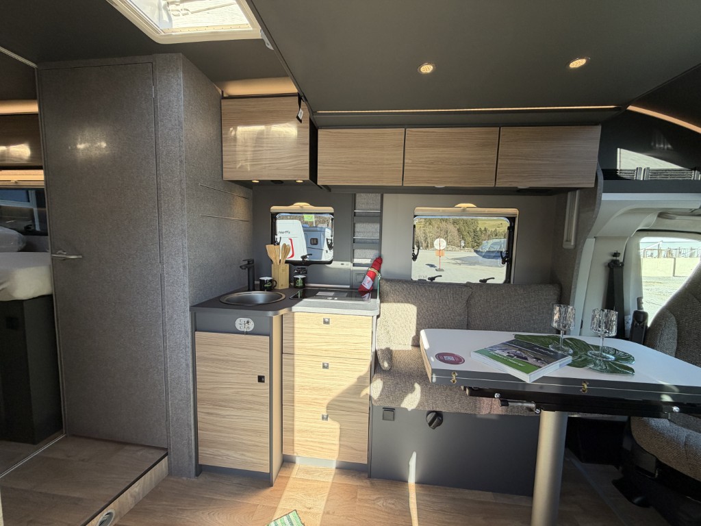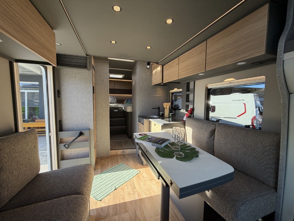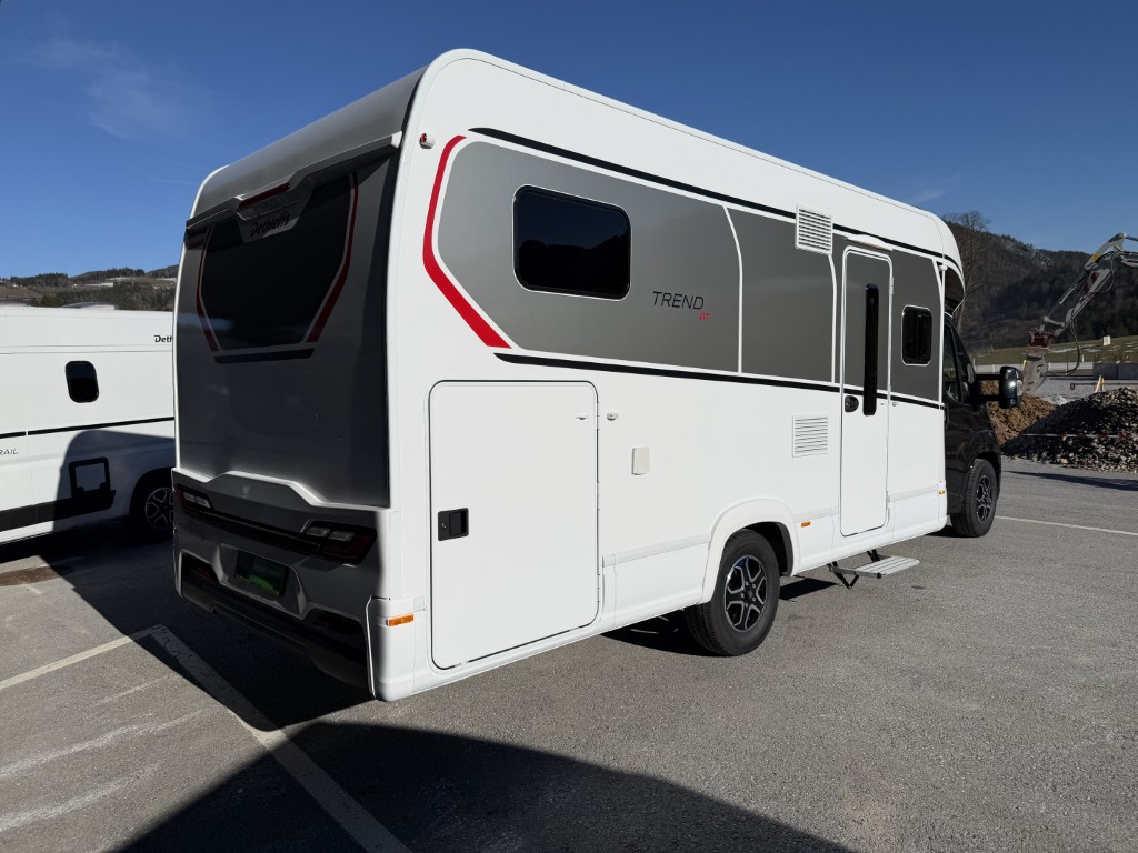 Sonderausstattung: Motorisierung 140 PS, Automatik, Active Paket (Wohnraumtür mit Fenster inkl. Verdunkelung und Zentralverriegelung (inkl. Fahrerhaustür), Verdunklungsjalousien im Fahrerhaus, Light Moments: Indirekte Ambientebeleuchtung über den Dachstauschränken, Light Moments: Indirekte Wandflächen-Ambientebeleuchtung, Light Moments: Küchenrückwand beleuchtet, Light Moments: Indirekte Beleuchtung im Badezimmer mit beleuchteter Duschkonsole, Light Moments: Eingangsmodul mit indirekter Beleuchtung, Bettumbau Einzelbetten zu Doppelbett, Außenfarbe Chassis Schwarz Metallic, Außendesign GT (Heckleuchtenträger mit schwarzem Diffusor, erweiterte Beklebung, Skidplate "rot"), Integrierte Einlinsen Rückfahrkamera, Vorbereitung SAT-Anlage, Vorbereitung Dach-Klimaanlage, Vorbereitung Solar, Duschrost, Dethleffs Naviceiver inkl. DAB+, Truck Navigation, Wireless Apple CarPlay und Android Auto, Textilleder-Wohnwelt Yoko, Fenster im Badezimmer), Winterkomfort Paket Warmluft ( Schalter für Wasserpumpe, Unterbodenleitungen isoliert, Abwassertank isoliert, Abwassertank und Abwasserleitungen elektrisch beheizt, zusätzliche Elektroheizung, XPS Aufbau-Isolierung ), elektrische Fußbodenerwärmung, Hubbett Listenpreis Ausstellungsfahrzeug € 116 715.- |