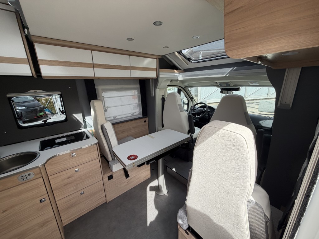Sonderausstattung: Motorisierung 140 PS Automatik, Active-Paket (Ausstellfenster in der T-Haube, Wohnraumtür mit Fenster inkl. Verdunkelung und Zentralverriegelung (inkl. Fahrerhaustür), Verdunklungsjalousien im Fahrerhaus, Panorama-Dachhaube 70x50cm im Wohnraum, Light Moments: Indirekte Ambientebeleuchtung über den Dachstauschränken, Light Moments: Indirekte Wandflächen-Ambientebeleuchtung, Stauraum-Türe Links, Doppelverglaste Rahmenfenster mit Verdunklung & Mückenschutz inkl. verkleidete Küchenrückwand, Textilleder- Wohnwelt Heron, Vorbereitung Solar, Light Moments: Küchenrückwand beleuchtet, Vorbereitung Dach-Klimaanlage, Digitales Bedienelement für Warmluftheizung, Dethleffs Naviceiver inkl. DAB+, Truck Navigation, Wireless Apple CarPlay und Android Auto, Rückfahrkamera (Einfachkamera), Vorbereitung SAT-Anlage, Active Außendesign (Heckleuchtenträger mit schwarzem Diffusor, erweiterte Beklebung, Skidplate "rot"), Bettumbau Einzelbetten zu Doppelbett, Gemütliche L-Sitzgruppe mit freistehendem, absenkbarem Tischfuß und 2 integrierte 3-Punkt-Gurte, Fenster im Badezimmer, Duschrost, Markise Omnistor 4,5 m (manuell)), Assistenzpaket ( Regen u. Lichtsensor mit Abblendautomatik, Notbremsassistent inkl. Fußgängererkennung, Spurhalteassistent, Verkehrszeichen-Assistent, Aufmerksamkeits-Assistent, Intelligenter Geschwindigkeits Assistent ) Hubbett, el. Fußdobenerwärmung, Vorbereitung für 2. Rückfahrkamera, Wohnwelt "Heron" |