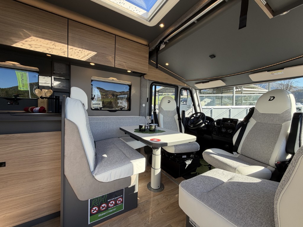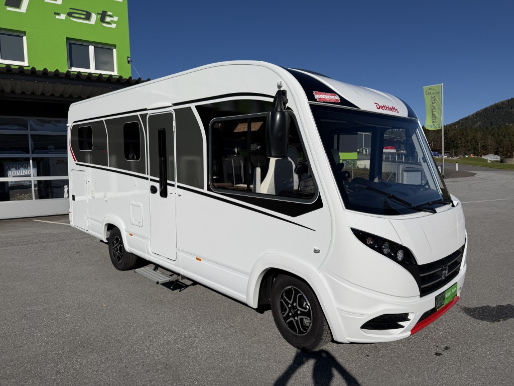 Motorisierung 140PS, AUTOMATIK, Active Paket (Wohnraumtür mit Fenster inkl. Verdunkelung und Zentralverriegelung (inkl. Fahrerhaustür), Light Moments: Indirekte Ambientebeleuchtung über den Dachstauschränken, Light Moments: Indirekte Wandflächen-Ambientebeleuchtung, Light Moments: Küchenrückwand beleuchtet, Light Moments: Indirekte Beleuchtung im Badezimmer mit beleuchteter Duschkonsole, Vorbereitung für Radiosystem inkl. Soundpaket im Fahrerhaus, Radioantenne DAB+ auf dem Dach montiert, Light Moments: Eingangsmodul mit indirekter Beleuchtung, Light Moments: Verkleidete Sitztruhenwange mit indirekter Beleuchtung, Gemütliche L-Sitzgruppe mit freistehendem, absenkbarem Tischfuß und 2 integrierte 3-Punkt-Gurte, Bettumbau Einzelbetten zu Doppelbett, Außendesign GT (Heckleuchtenträger mit schwarzem Diffusor, erweiterte Beklebung, Skidplate "rot"), Integrierte Einlinsen Rückfahrkamera, Vorbereitung SAT-Anlage, Vorbereitung Dach-Klimaanlage, Vorbereitung Solar, Duschrost, Dethleffs Naviceiver inkl. DAB+, Truck Navigation, Wireless Apple CarPlay und Android Auto, Textilleder-Wohnwelt Heron, Fenster im Badezimmer, |