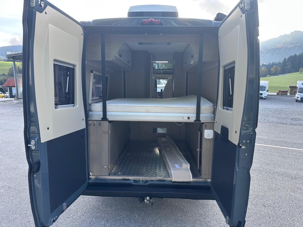Sonderausstattung: Motorisierung 140PS, Automatik, Motorklimaanlage, Tempomat, el. Fensterheber, el. Spiegel, Zentralverriegelung, Nebelscheinwerfer, Farbe grau, Alufelgen, Radio mit Rückfahrkamera, Solaranlage, Dachklimaanlage, Markise, Anhängerkupplung, vollautomatische Satanlage inkl. TV, Fahrerhausverdunkelungen, elektrisches Heckbett höhenverstellbar - ideal zum Transport von Fahrräder / Motorrad, 1. Besitz |